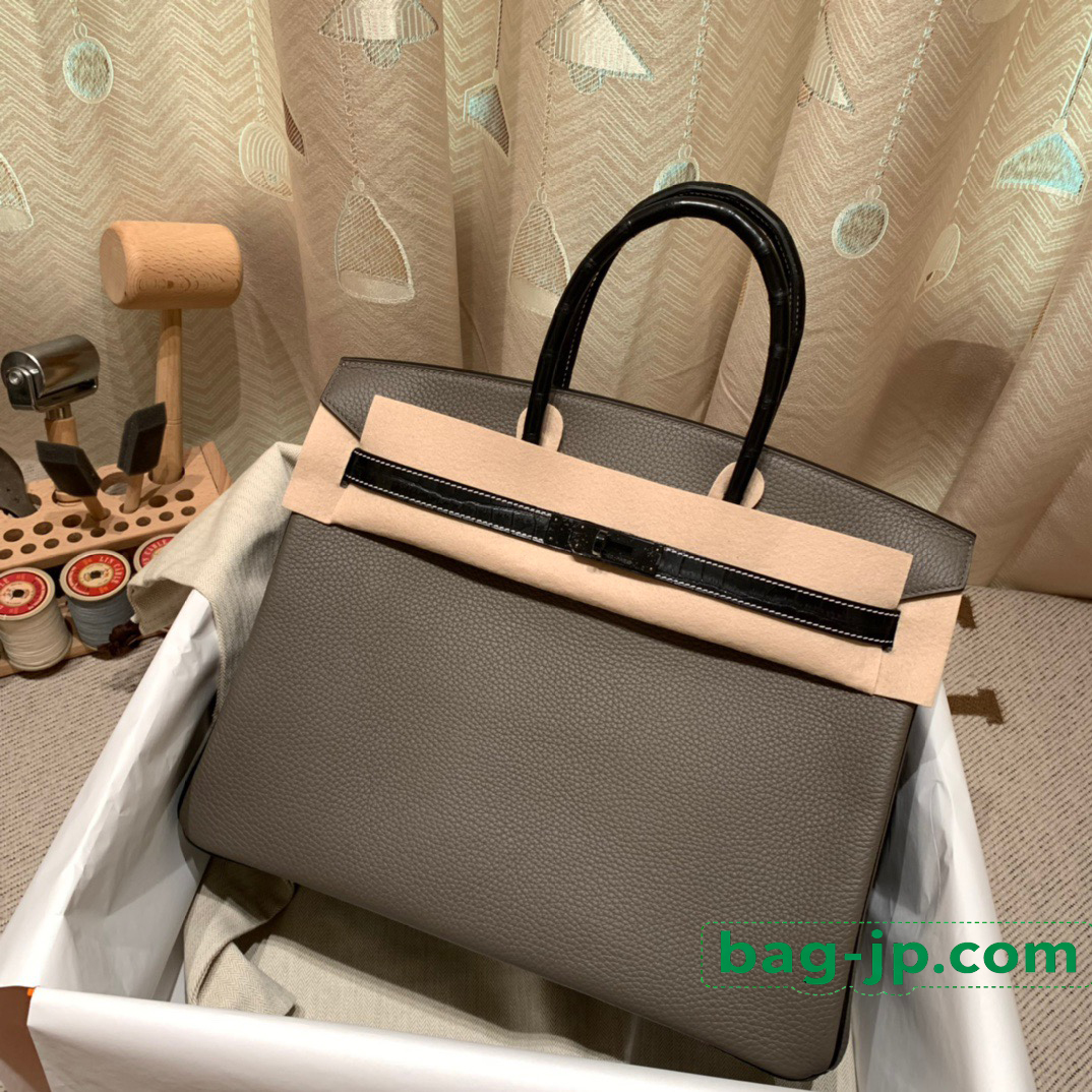 8F/Etain&89/Black エタン×ブラック So Black Hardware 全手縫い エルメスバーキン35センチ Togo&chamois レビュー